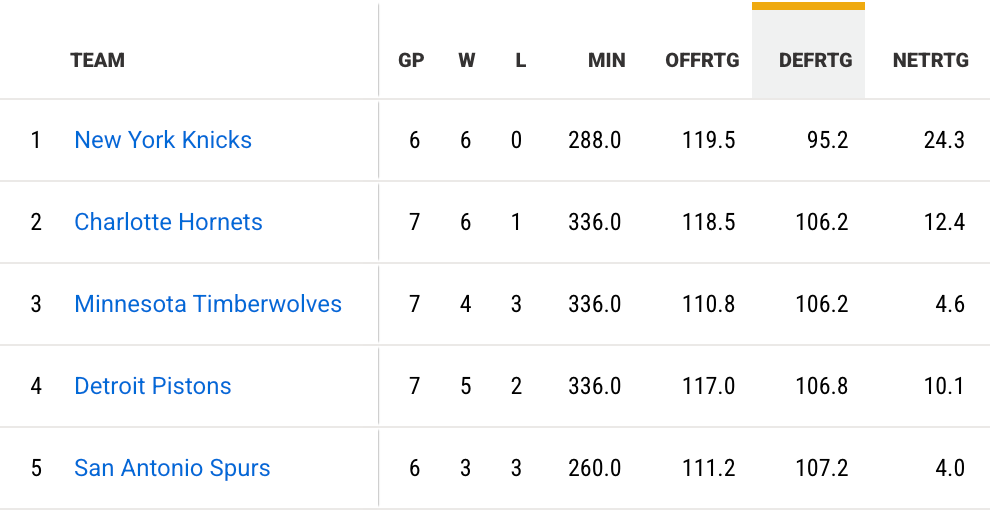 Two weeks ago, the Knicks were barely above the bottom 10 in the league in defense. Today, they wake up barely outside the top 10. Over these six wins, they’re not just the best defense in basketball, but the gap between them and the next best team is larger than the gap between the second best defense and the 23rd best defense over that same time frame.
