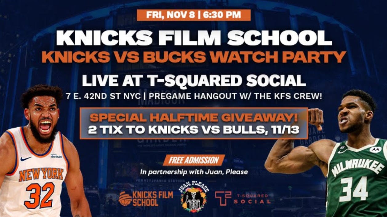 Good morning! Let’s start with your daily reminder to join us at T2 Social on Friday night for a Knicks / Bucks watch party and a chance to win two free tickets to Knicks / Bulls on November 13, courtesy of Juan, Please.
