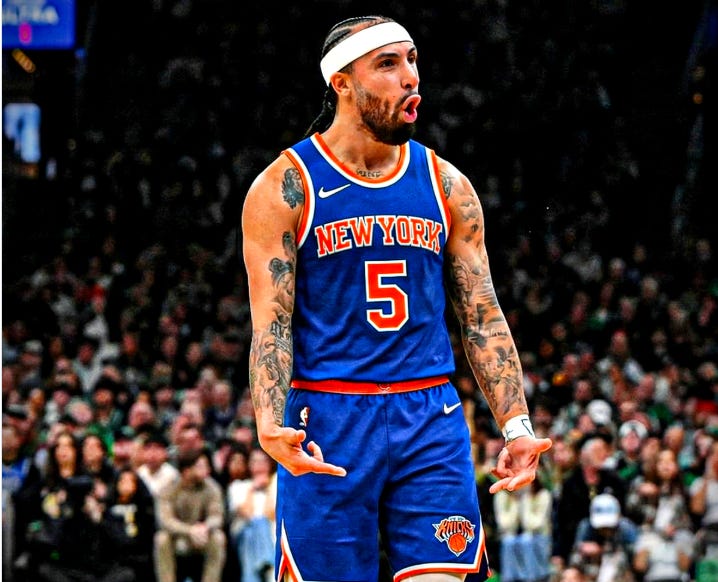 Flowers to all including KAT. It’s not what they signed up for when they laid out 53 million, but the rebounding and low post effort was just enough yesterday. He was the best center on the floor yesterday, including the guy Boston gave up a rejuvenated Anfernee Simons and draft capital for. KAT will have better games. Vukovic is where he is. Looks promising in a playoff series. OG and Mo D may have a brilliant future together as big strong wing defenders. You can’t overlook how hard they made Jaylen Brown work for his points. We owned the fourth quarter. Alvarado is as annoying as they come. Thankfully not to us anymore. Giving Brunson that fourth quarter blow was terrific. Flowers to all.