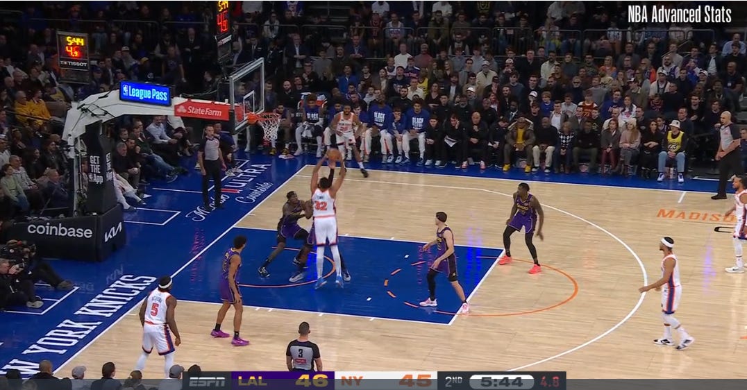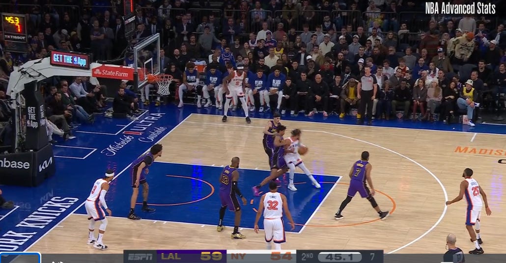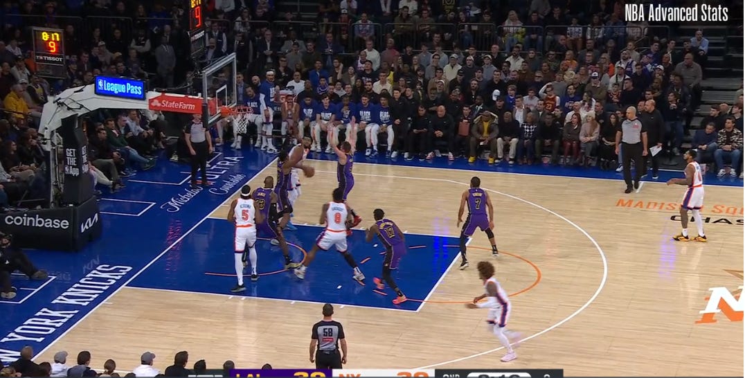 Again: the Knicks had plenty of opportunities to exploit the Lakers’ coverage of Towns. They just didn’t take full advantage of what they were given.